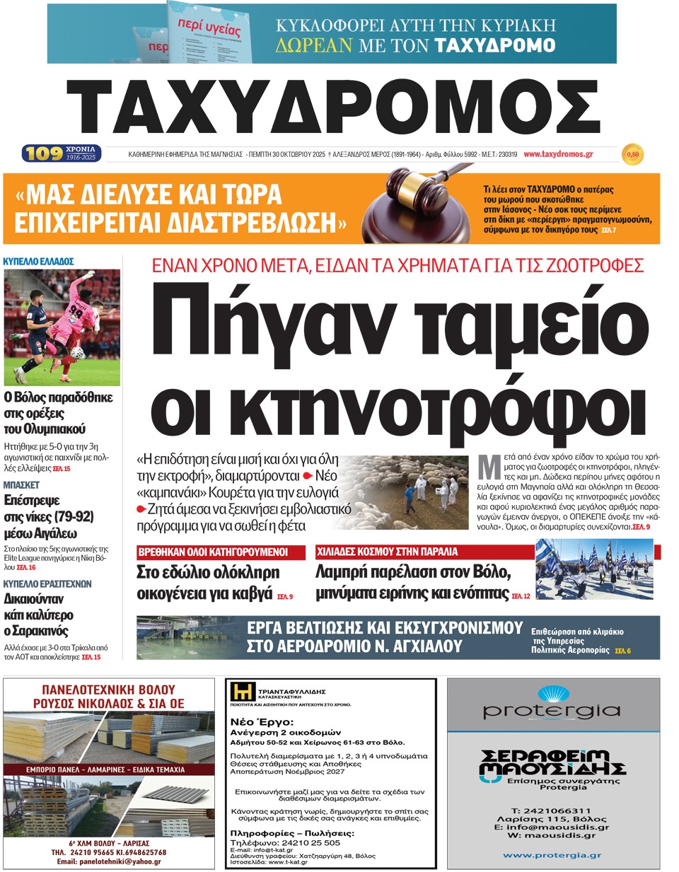 ΤΑΧΥΔΡΟΜΟΣ - 30 Οκτωβρίου 2025