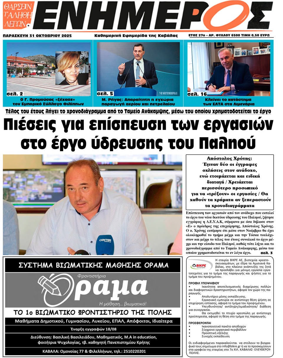 ΕΝΗΜΕΡΟΣ - 31 Οκτωβρίου 2025