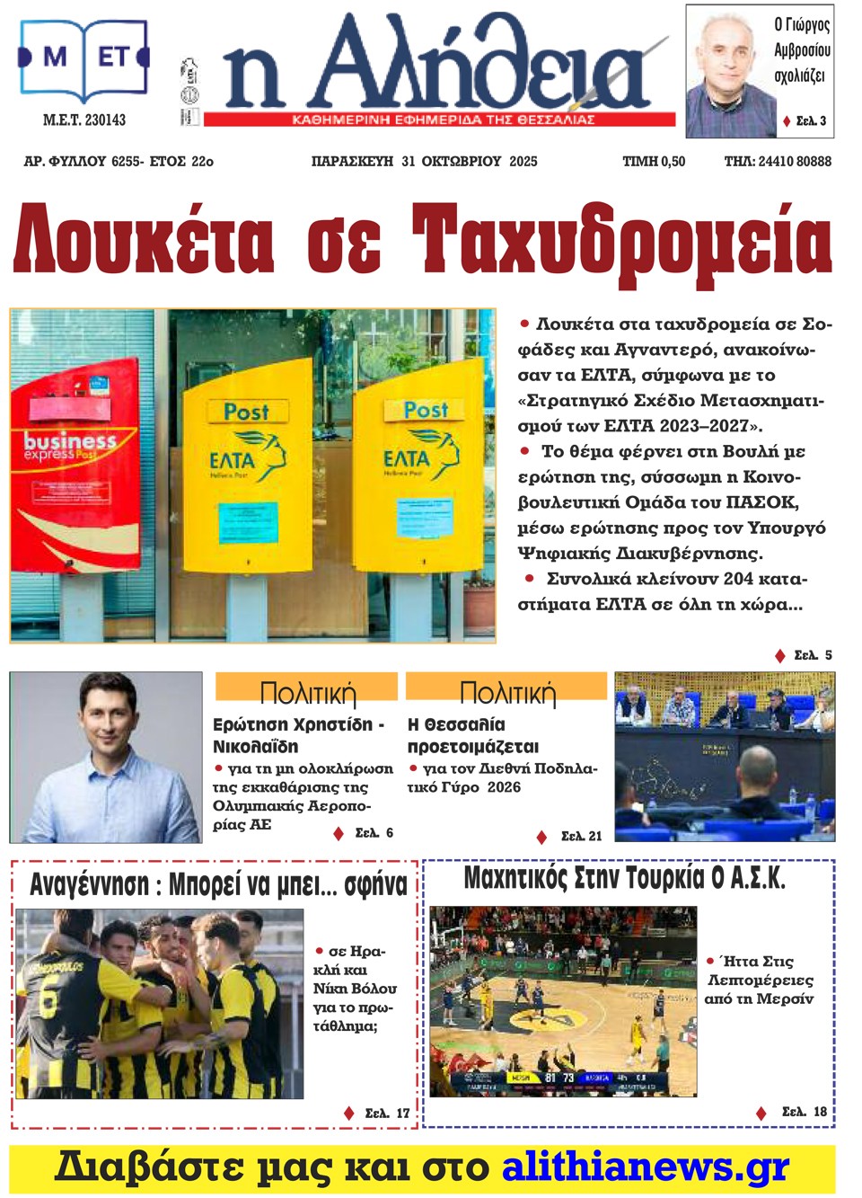 Η ΑΛΗΘΕΙΑ - 31 Οκτωβρίου 2025