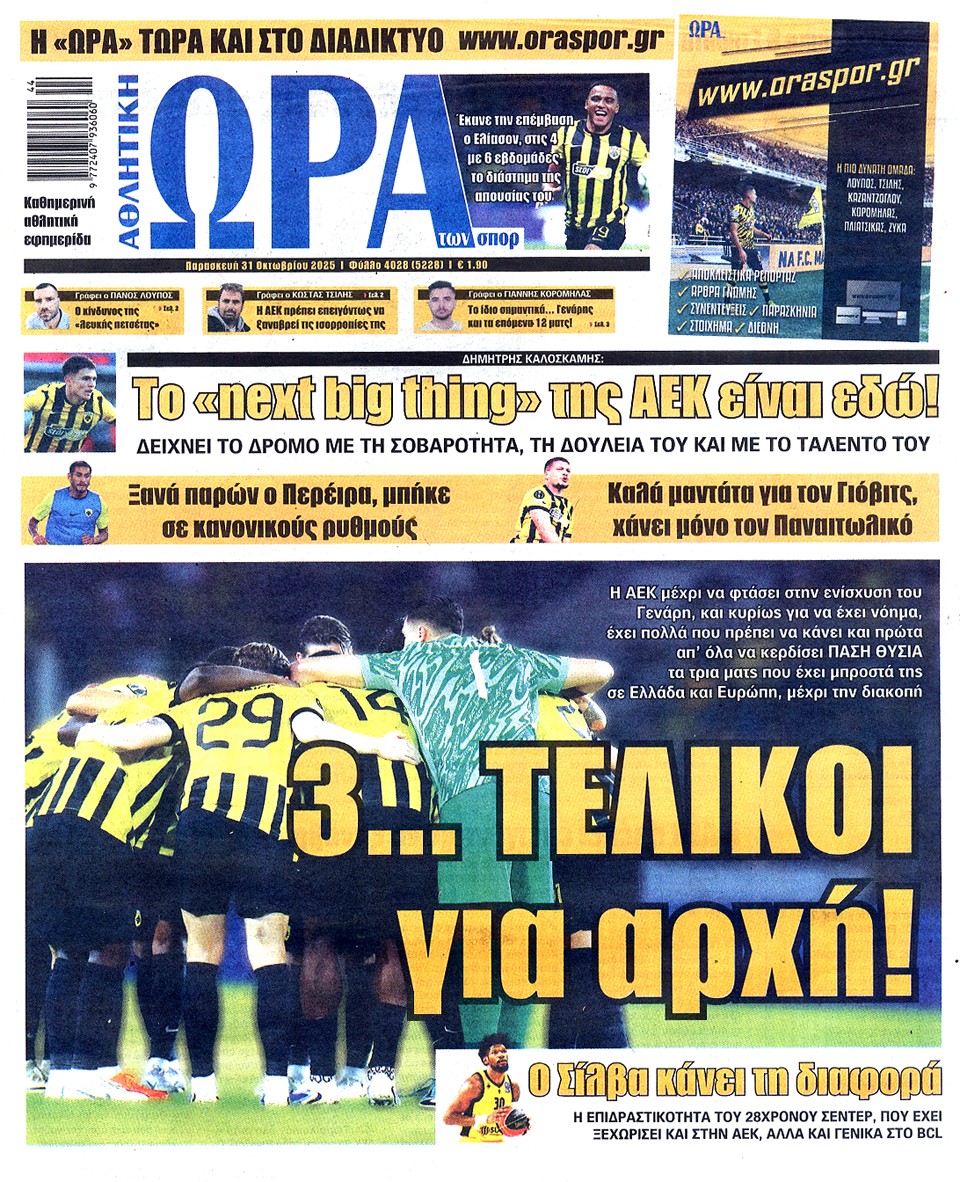 ΑΘΛΗΤΙΚΗ ΩΡΑ ΤΩΝ ΣΠΟΡ - 31 Οκτωβρίου 2025