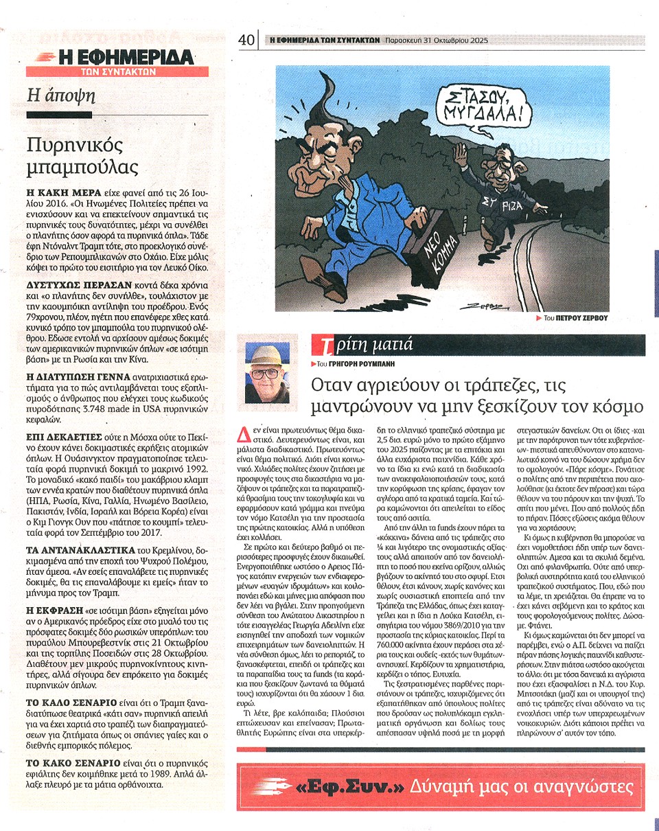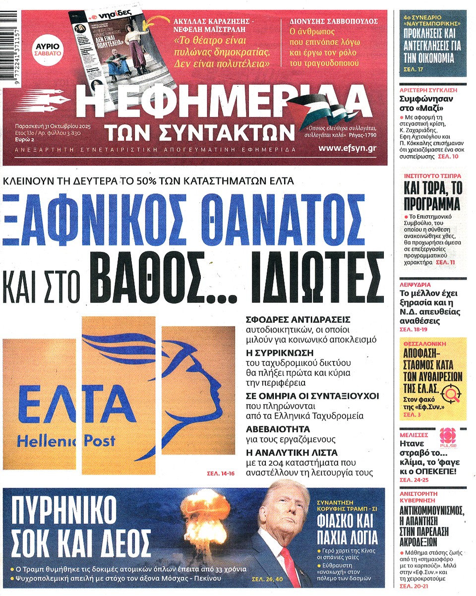 Η ΕΦΗΜΕΡΙΔΑ ΤΩΝ ΣΥΝΤΑΚΤΩΝ - 31 Οκτωβρίου 2025