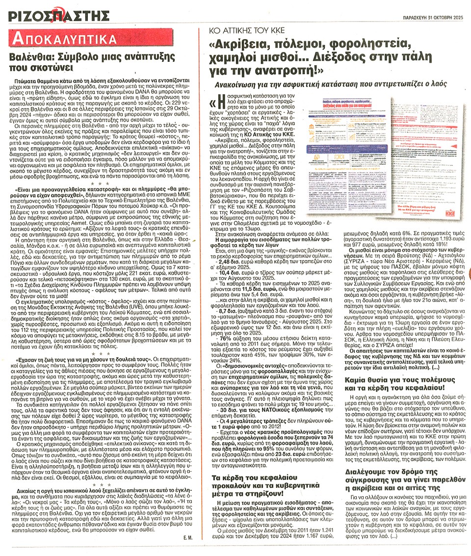 ΡΙΖΟΣΠΑΣΤΗΣ - 31 Οκτωβρίου 2025