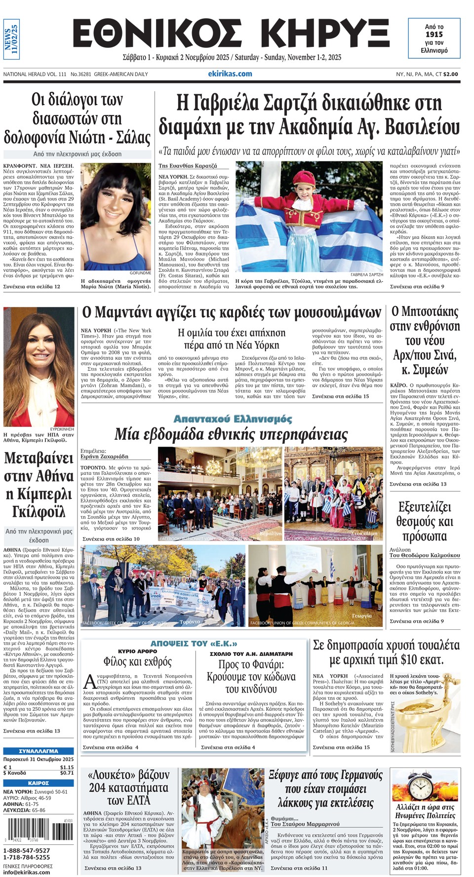 ΕΘΝΙΚΟΣ ΚΗΡΥΞ - 01 Νοεμβρίου 2025