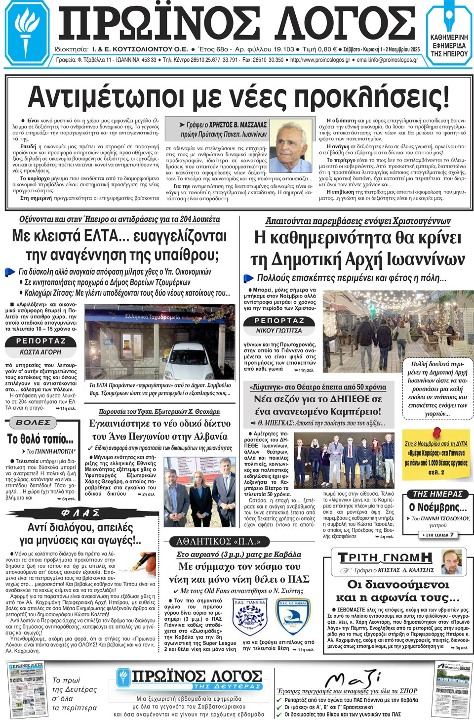 ΠΡΩΙΝΟΣ ΛΟΓΟΣ - 01 Νοεμβρίου 2025