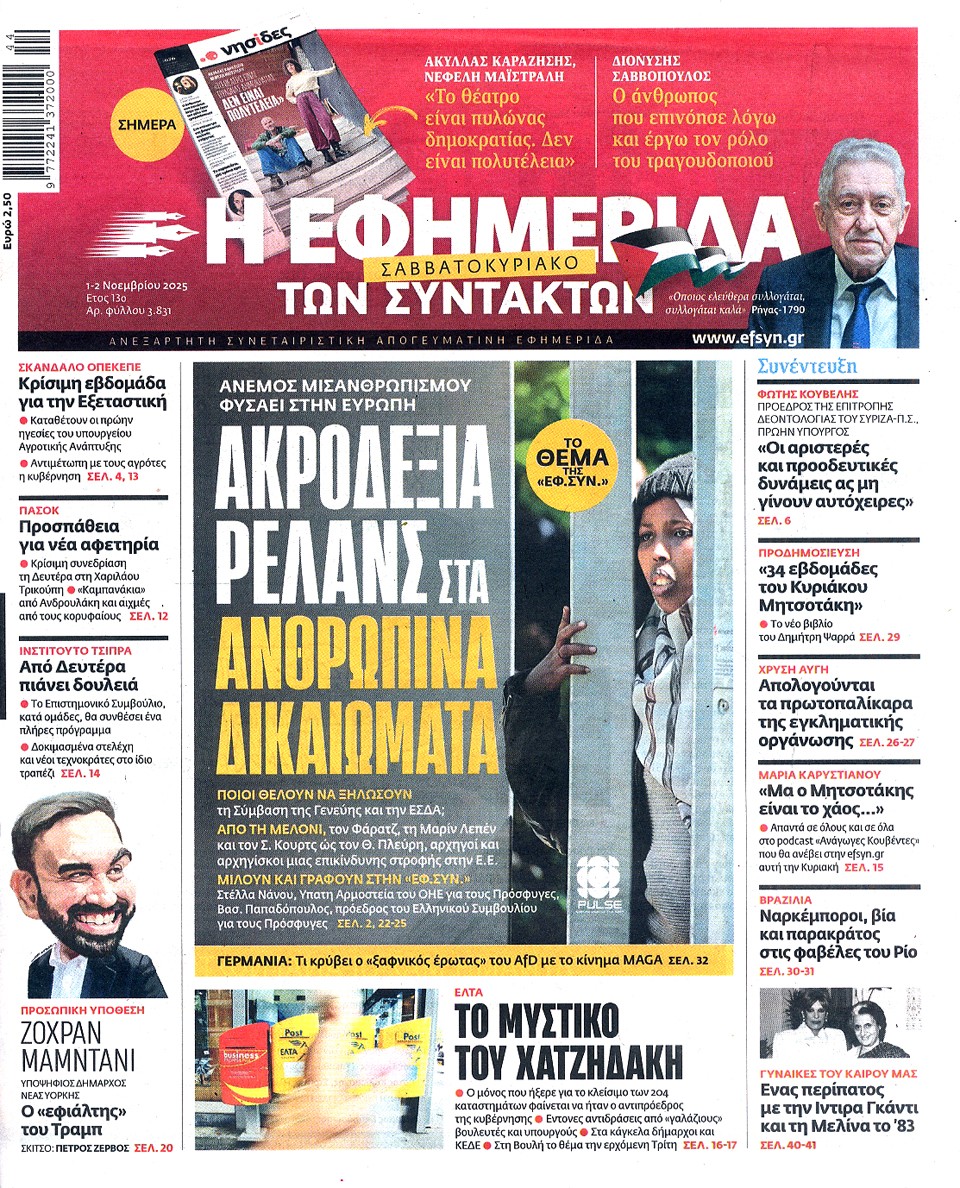 Η ΕΦΗΜΕΡΙΔΑ ΤΩΝ ΣΥΝΤΑΚΤΩΝ - 01 Νοεμβρίου 2025