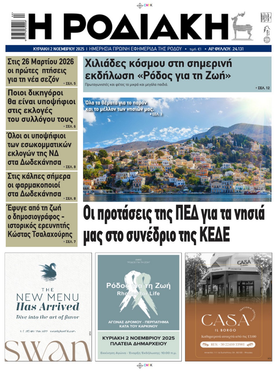 Η ΡΟΔΙΑΚΗ - 02 Νοεμβρίου 2025