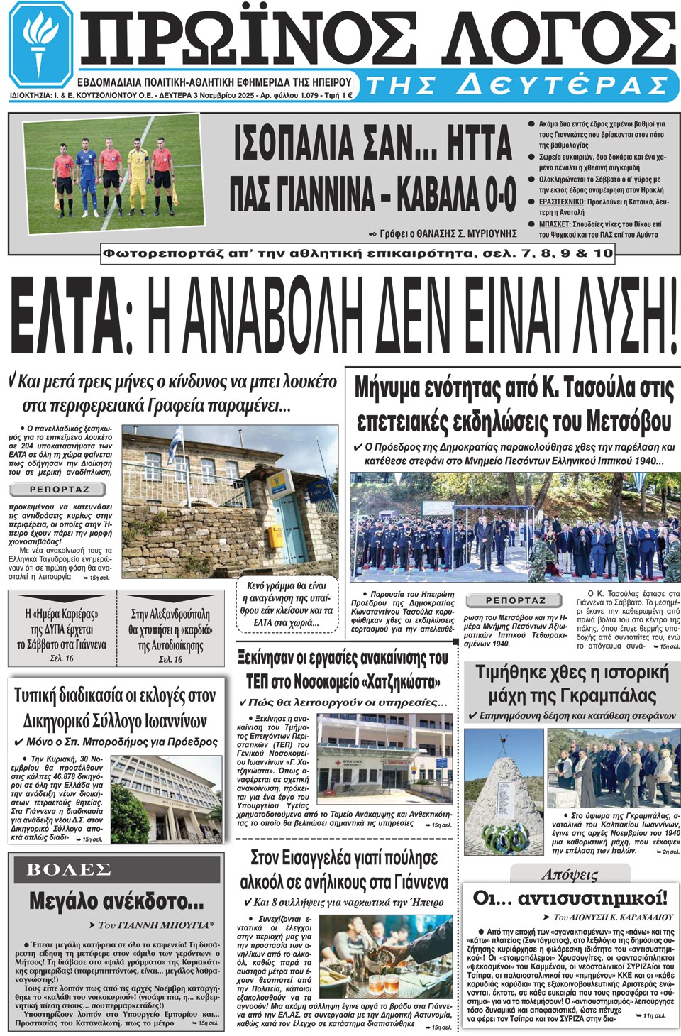 ΠΡΩΙΝΟΣ ΛΟΓΟΣ - 03 Νοεμβρίου 2025