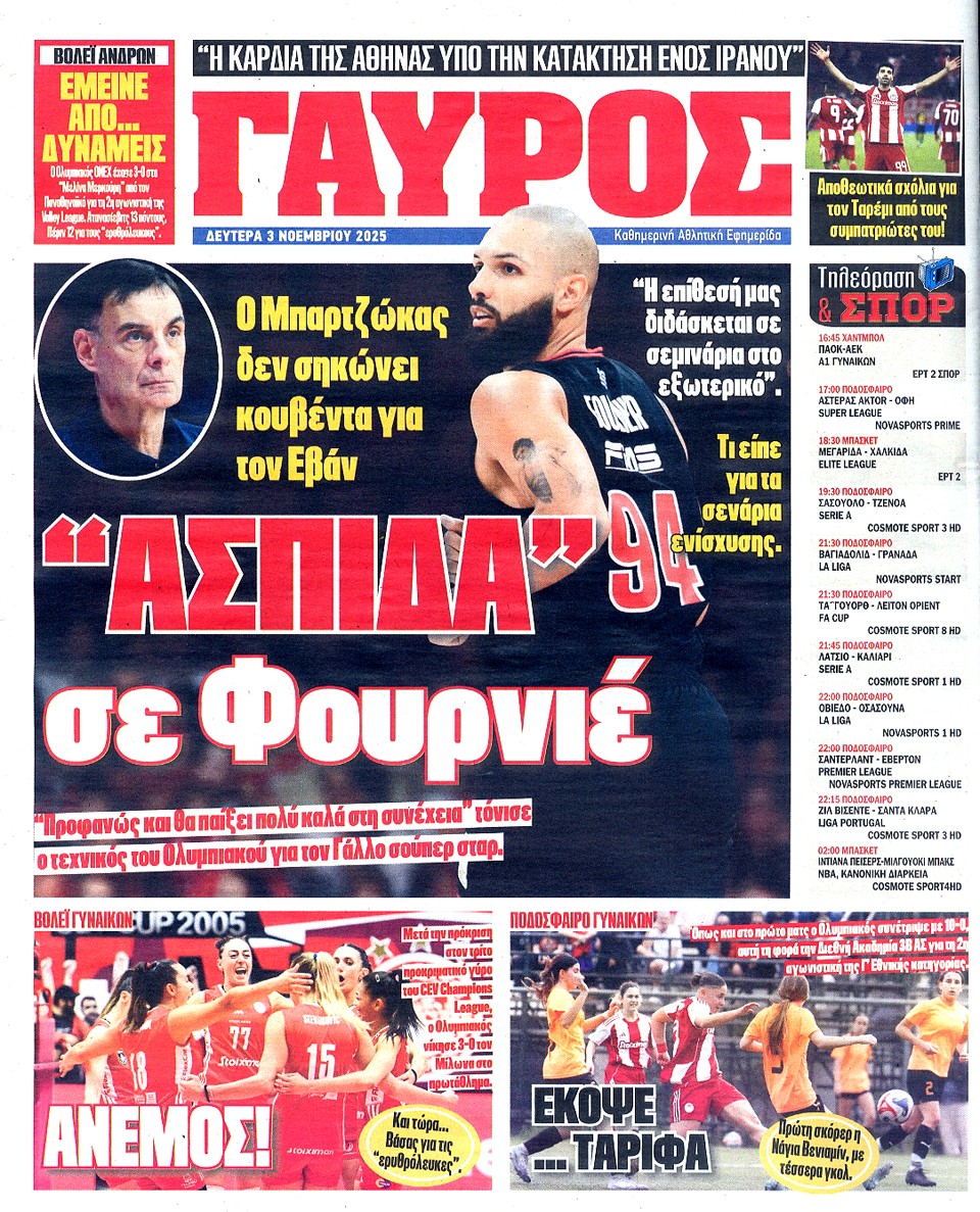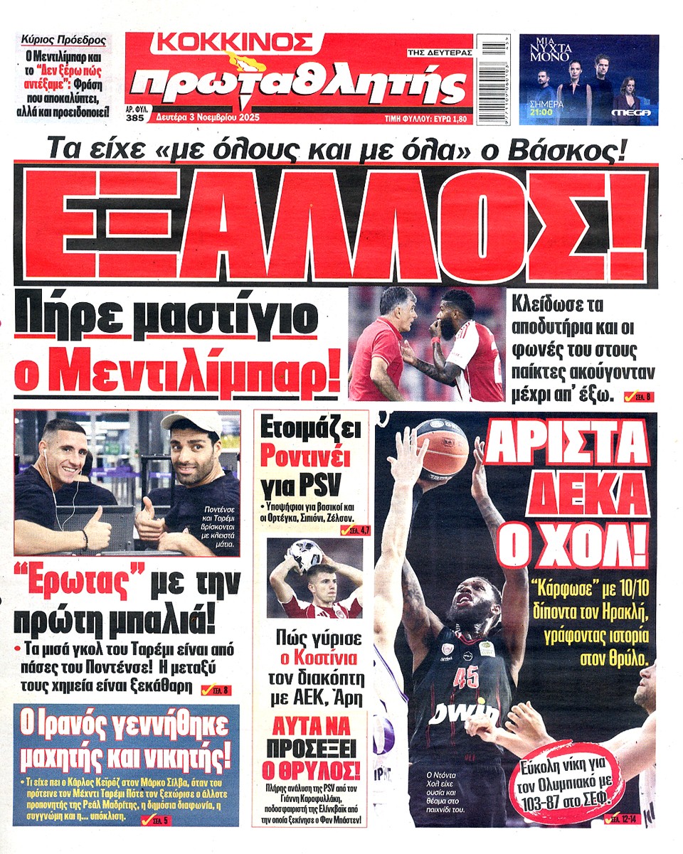 ΠΡΩΤΑΘΛΗΤΗΣ - 03 Νοεμβρίου 2025