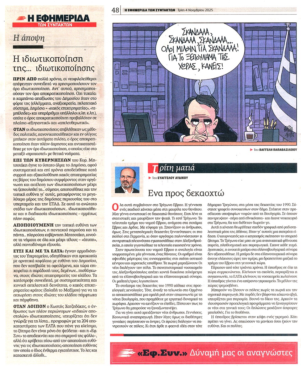 Η ΕΦΗΜΕΡΙΔΑ ΤΩΝ ΣΥΝΤΑΚΤΩΝ - 04 Νοεμβρίου 2025
