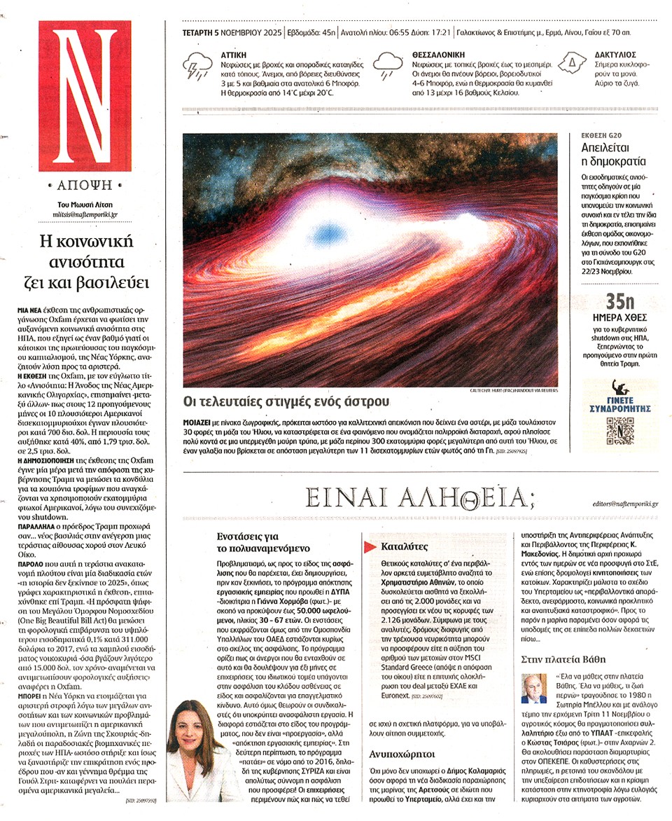 ΝΑΥΤΕΜΠΟΡΙΚΗ - 05 Νοεμβρίου 2025