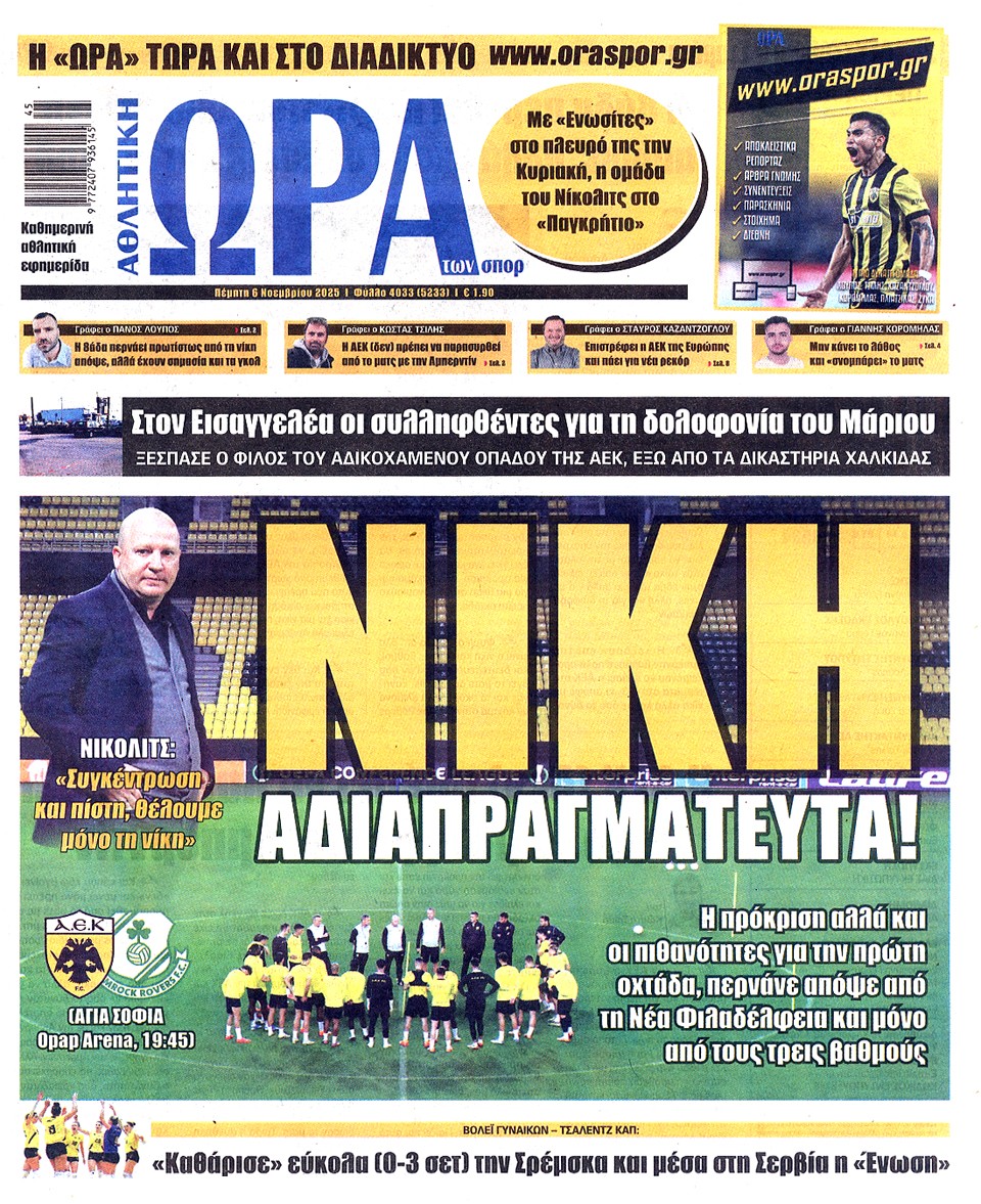 ΑΘΛΗΤΙΚΗ ΩΡΑ ΤΩΝ ΣΠΟΡ - 06 Νοεμβρίου 2025