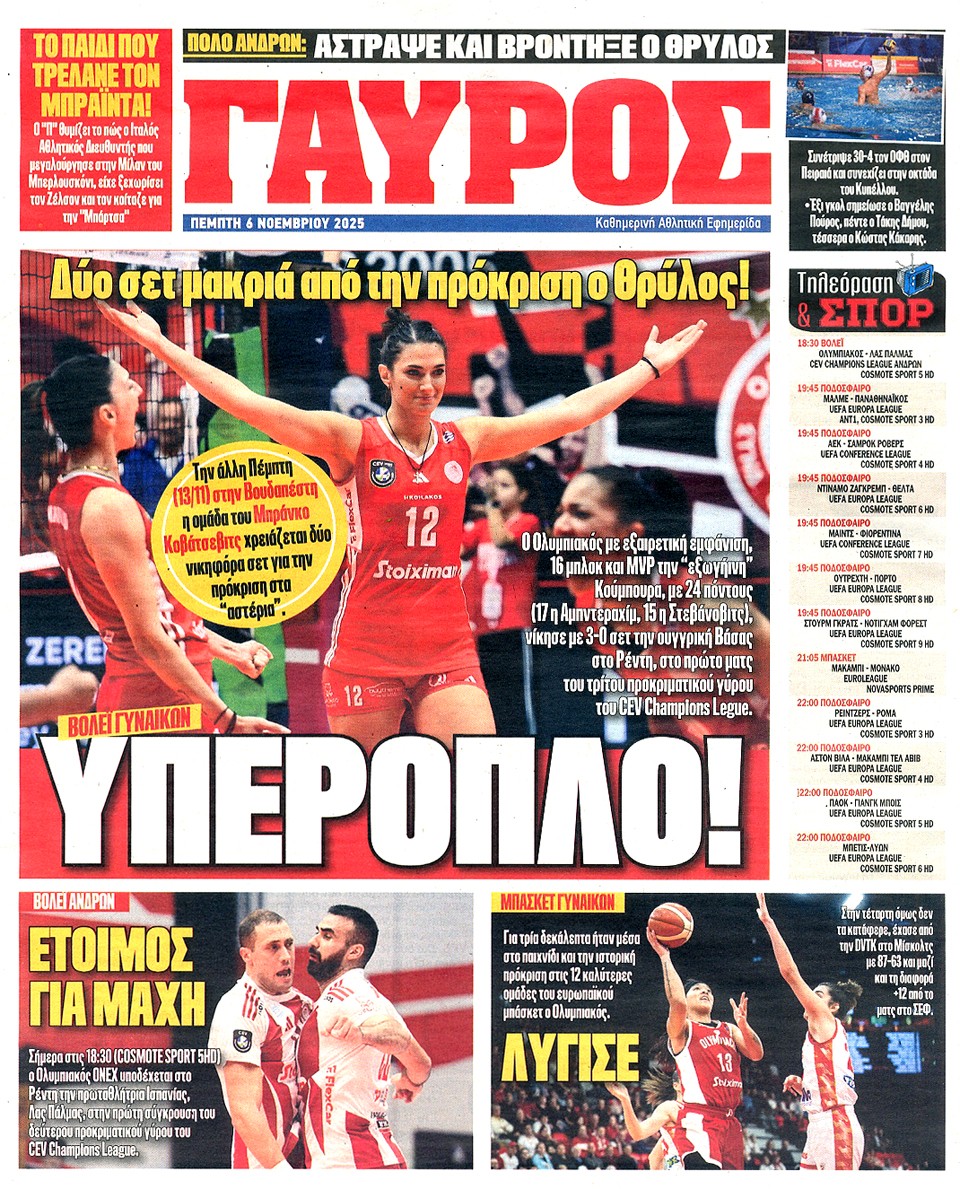 ΠΡΩΤΑΘΛΗΤΗΣ - 06 Νοεμβρίου 2025