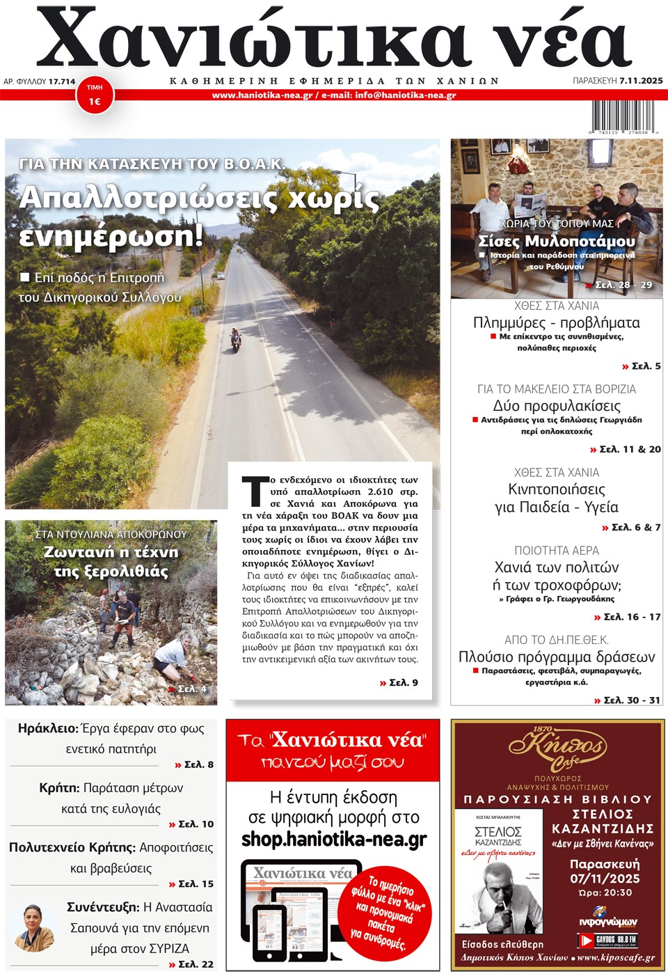 ΧΑΝΙΩΤΙΚΑ ΝΕΑ - 07 Νοεμβρίου 2025