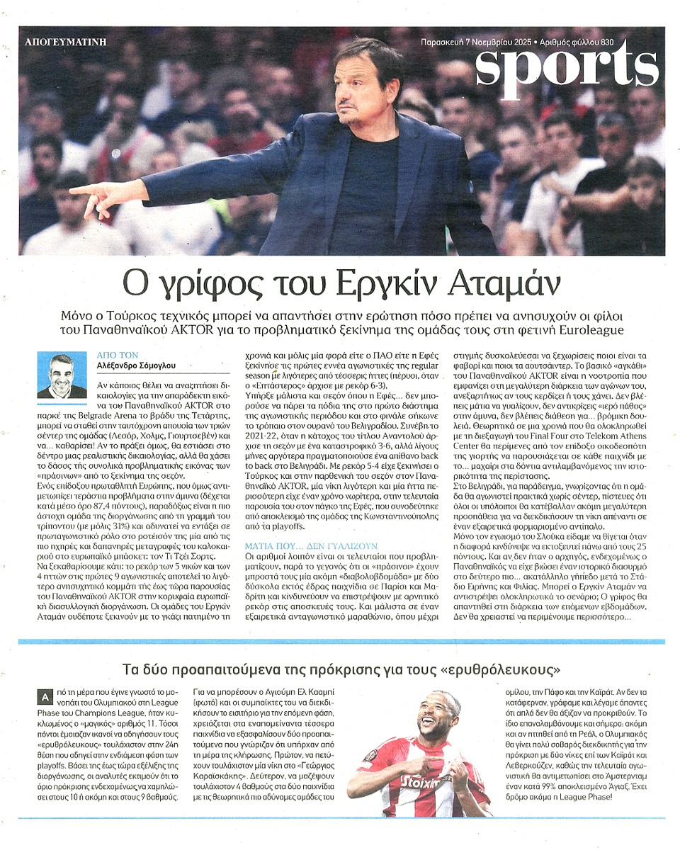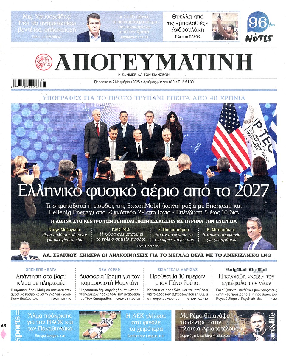 ΑΠΟΓΕΥΜΑΤΙΝΗ - 07 Νοεμβρίου 2025