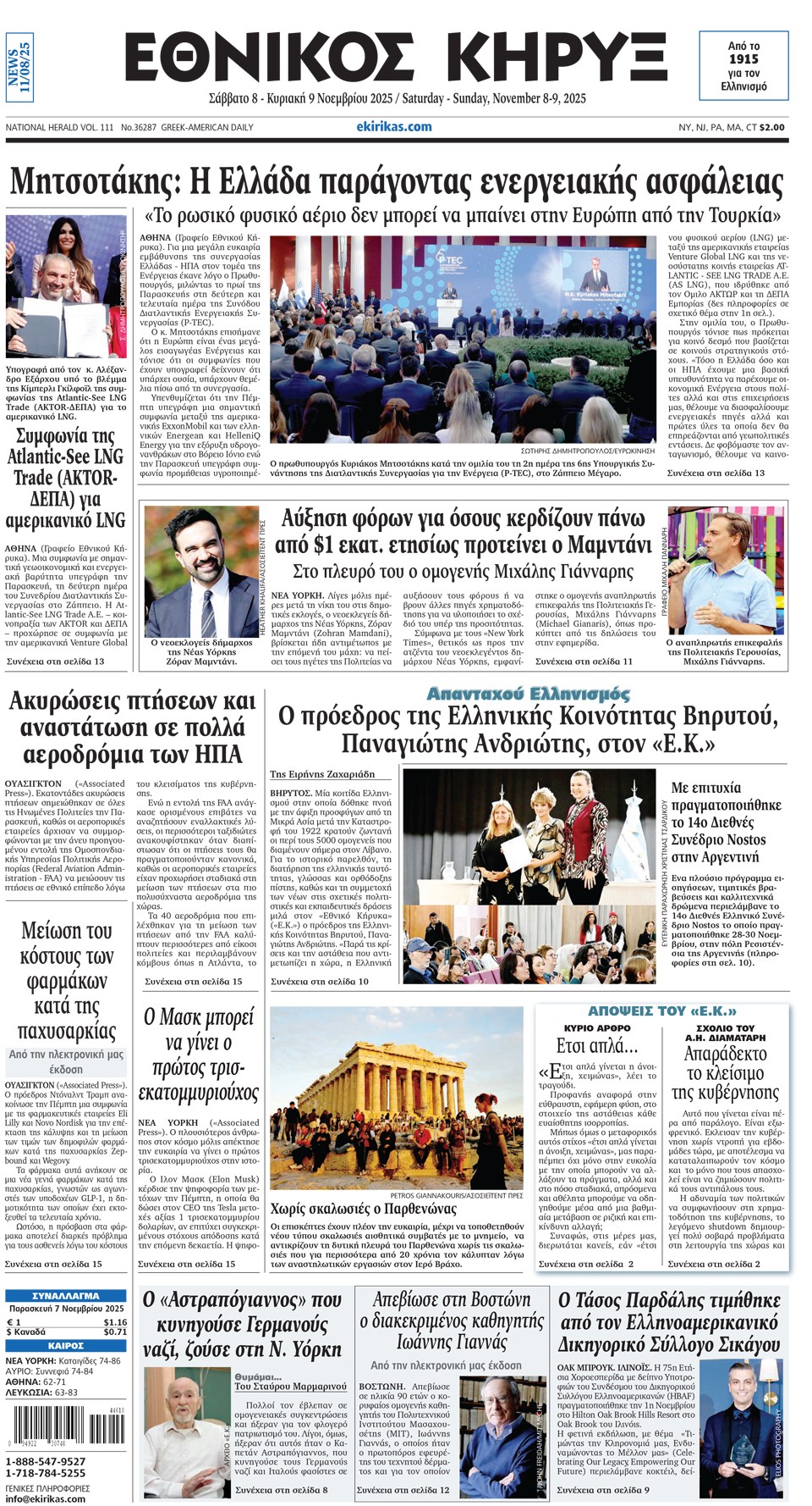 ΕΘΝΙΚΟΣ ΚΗΡΥΞ - 08 Νοεμβρίου 2025