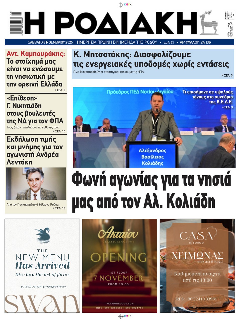 Η ΡΟΔΙΑΚΗ - 08 Νοεμβρίου 2025
