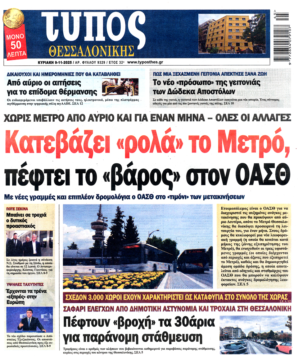ΤΥΠΟΣ ΘΕΣΣΑΛΟΝΙΚΗΣ - 09 Νοεμβρίου 2025