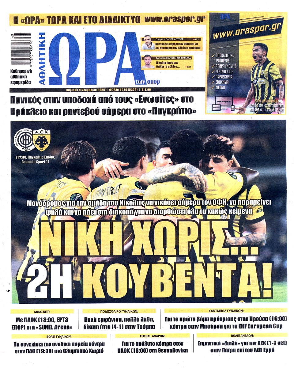 ΑΘΛΗΤΙΚΗ ΩΡΑ ΤΩΝ ΣΠΟΡ - 09 Νοεμβρίου 2025