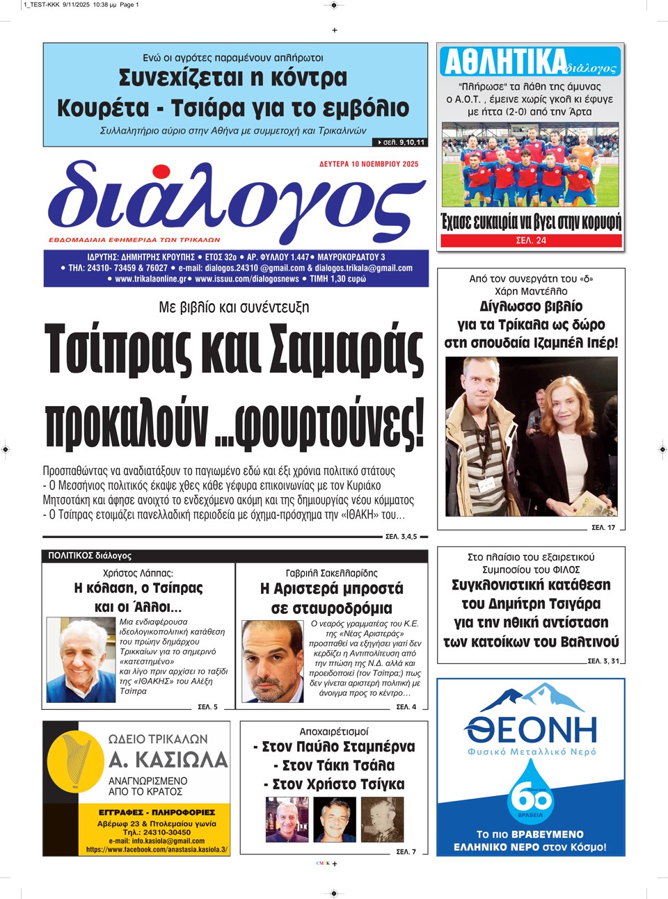 ΔΙΑΛΟΓΟΣ (ΤΡΙΚΑΛΑ) - 10 Νοεμβρίου 2025