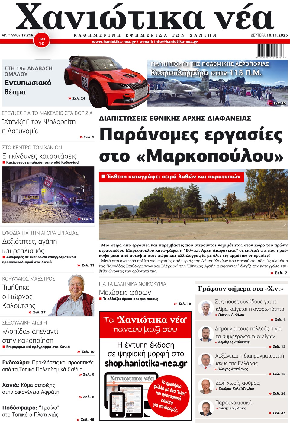 ΧΑΝΙΩΤΙΚΑ ΝΕΑ - 10 Νοεμβρίου 2025