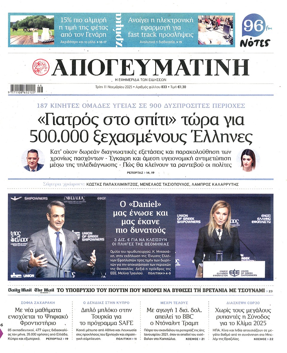 ΑΠΟΓΕΥΜΑΤΙΝΗ - 11 Νοεμβρίου 2025
