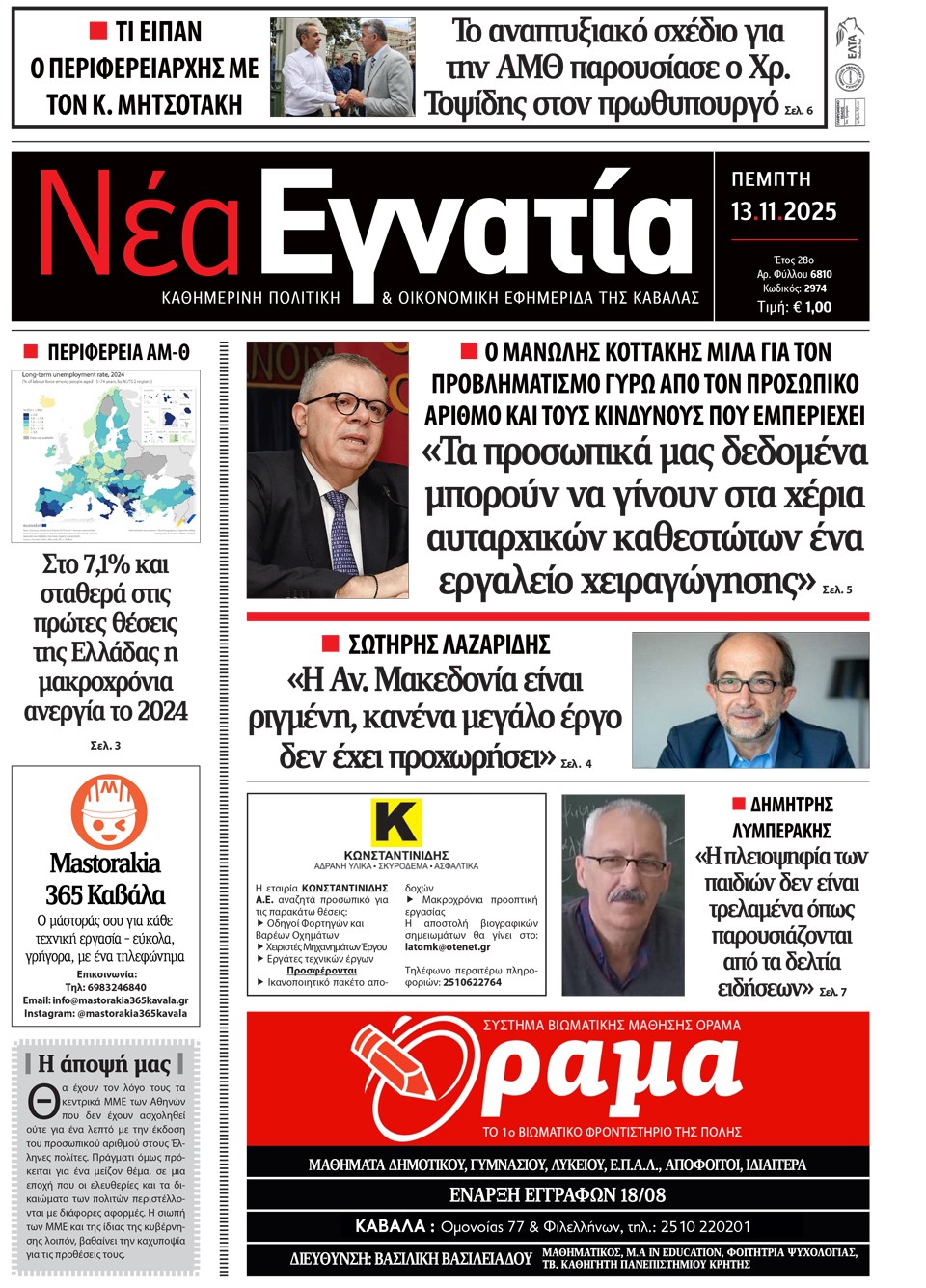 ΝΕΑ ΕΓΝΑΤΙΑ - 13 Νοεμβρίου 2025