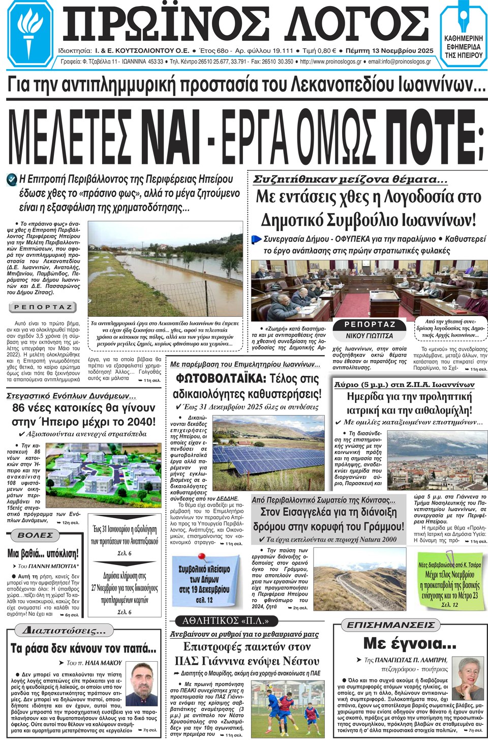 ΠΡΩΙΝΟΣ ΛΟΓΟΣ - 13 Νοεμβρίου 2025