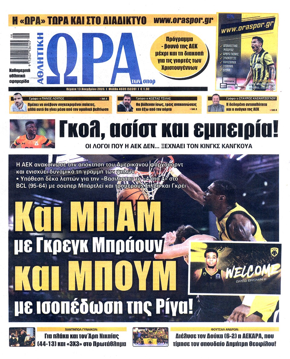 ΑΘΛΗΤΙΚΗ ΩΡΑ ΤΩΝ ΣΠΟΡ - 13 Νοεμβρίου 2025