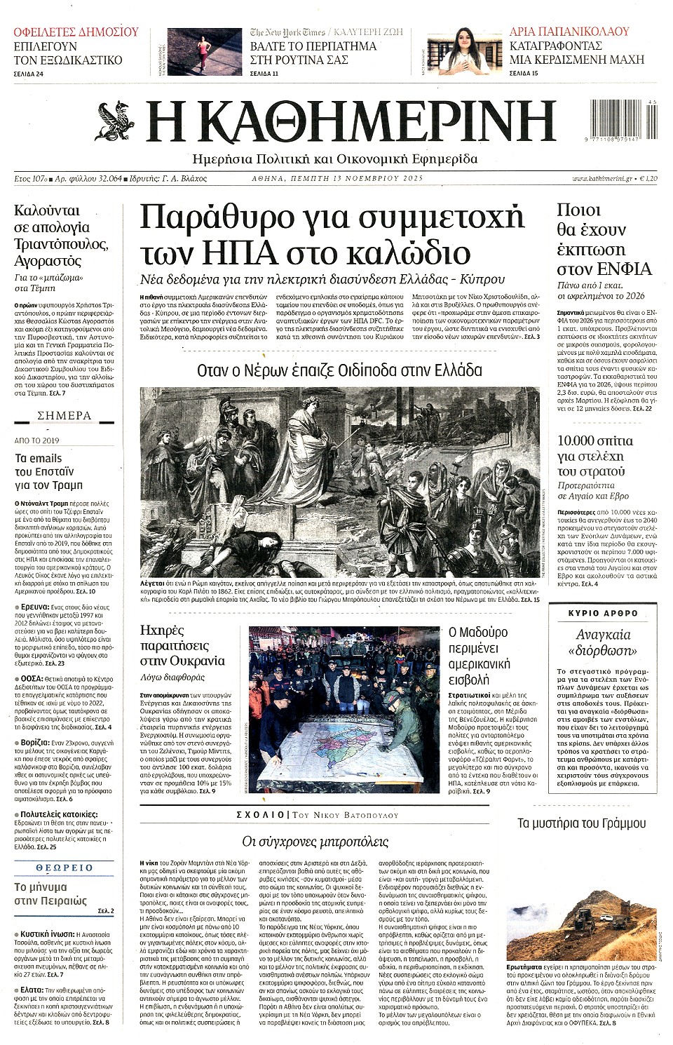 ΚΑΘΗΜΕΡΙΝΗ - 13 Νοεμβρίου 2025