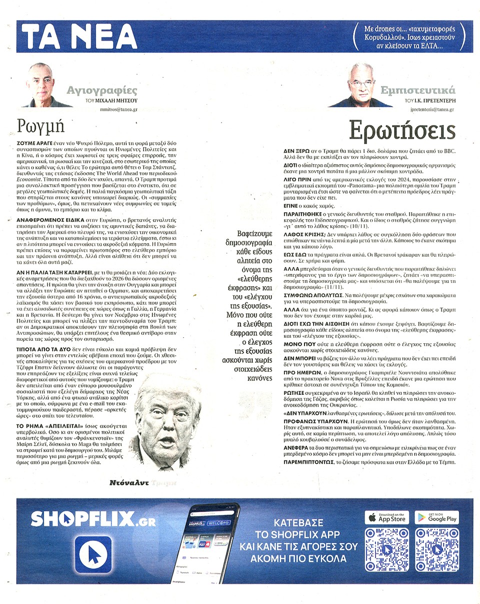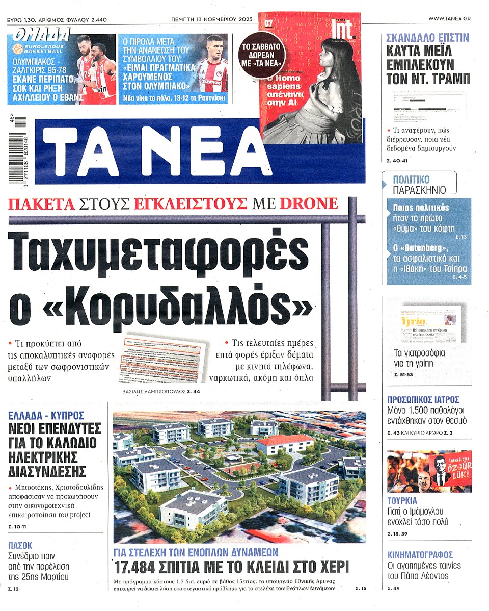 ΤΑ ΝΕΑ - 13 Νοεμβρίου 2025