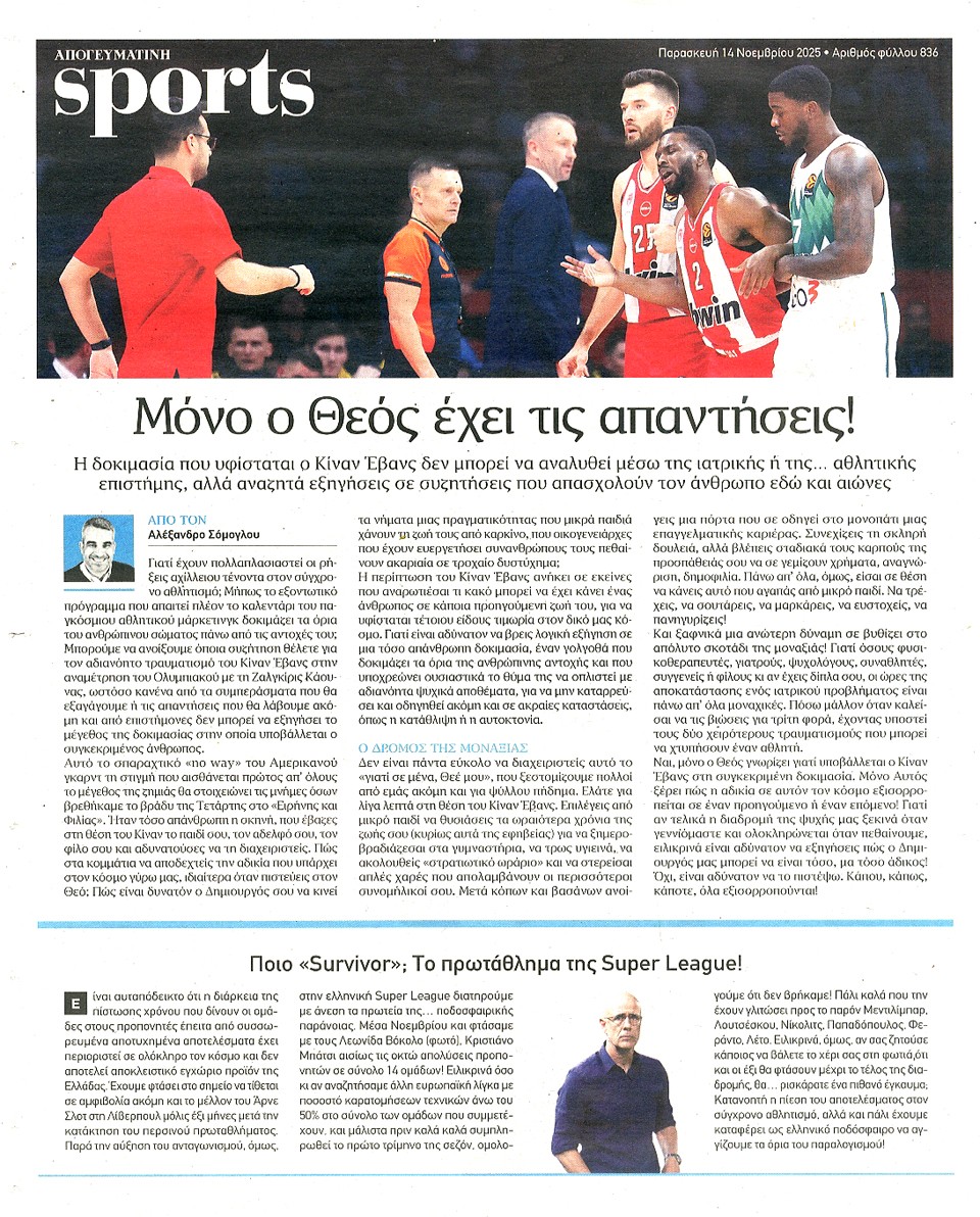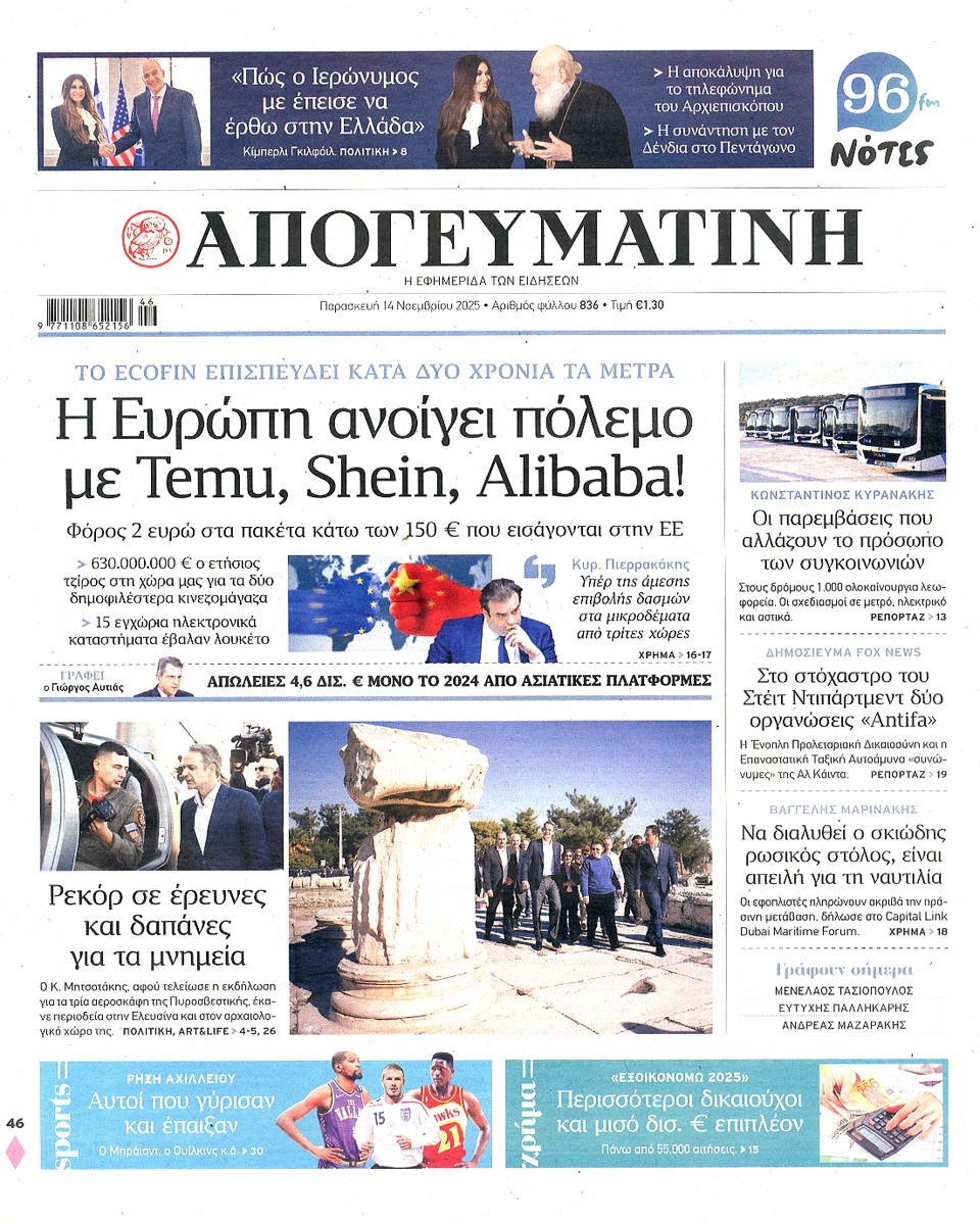 ΑΠΟΓΕΥΜΑΤΙΝΗ - 14 Νοεμβρίου 2025