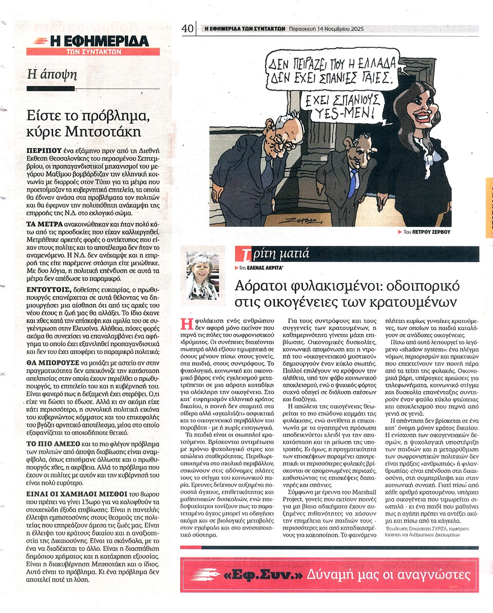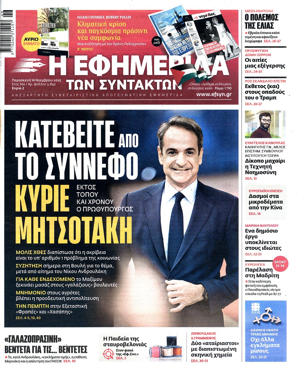 Η ΕΦΗΜΕΡΙΔΑ ΤΩΝ ΣΥΝΤΑΚΤΩΝ - 14 Νοεμβρίου 2025