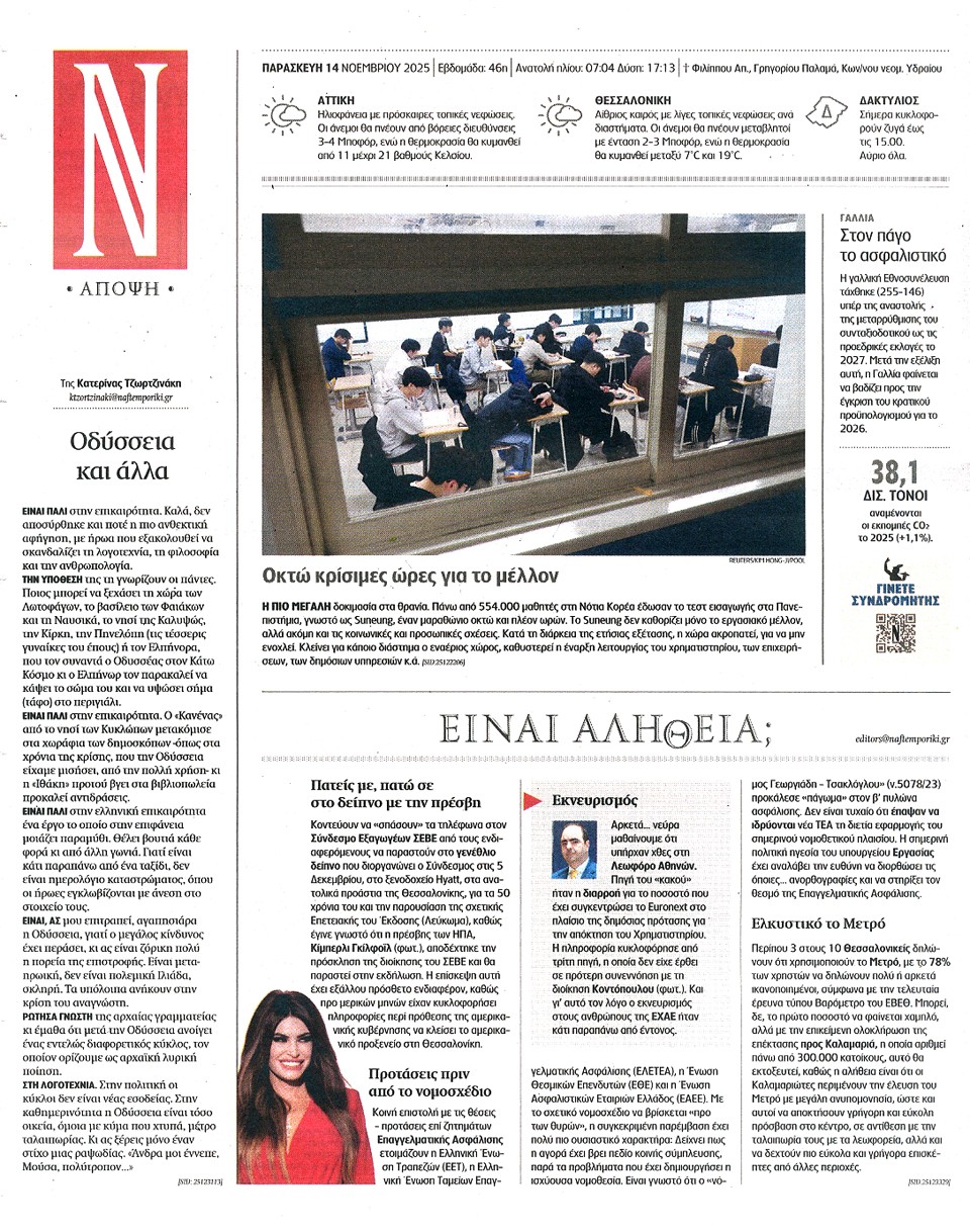 ΝΑΥΤΕΜΠΟΡΙΚΗ - 14 Νοεμβρίου 2025