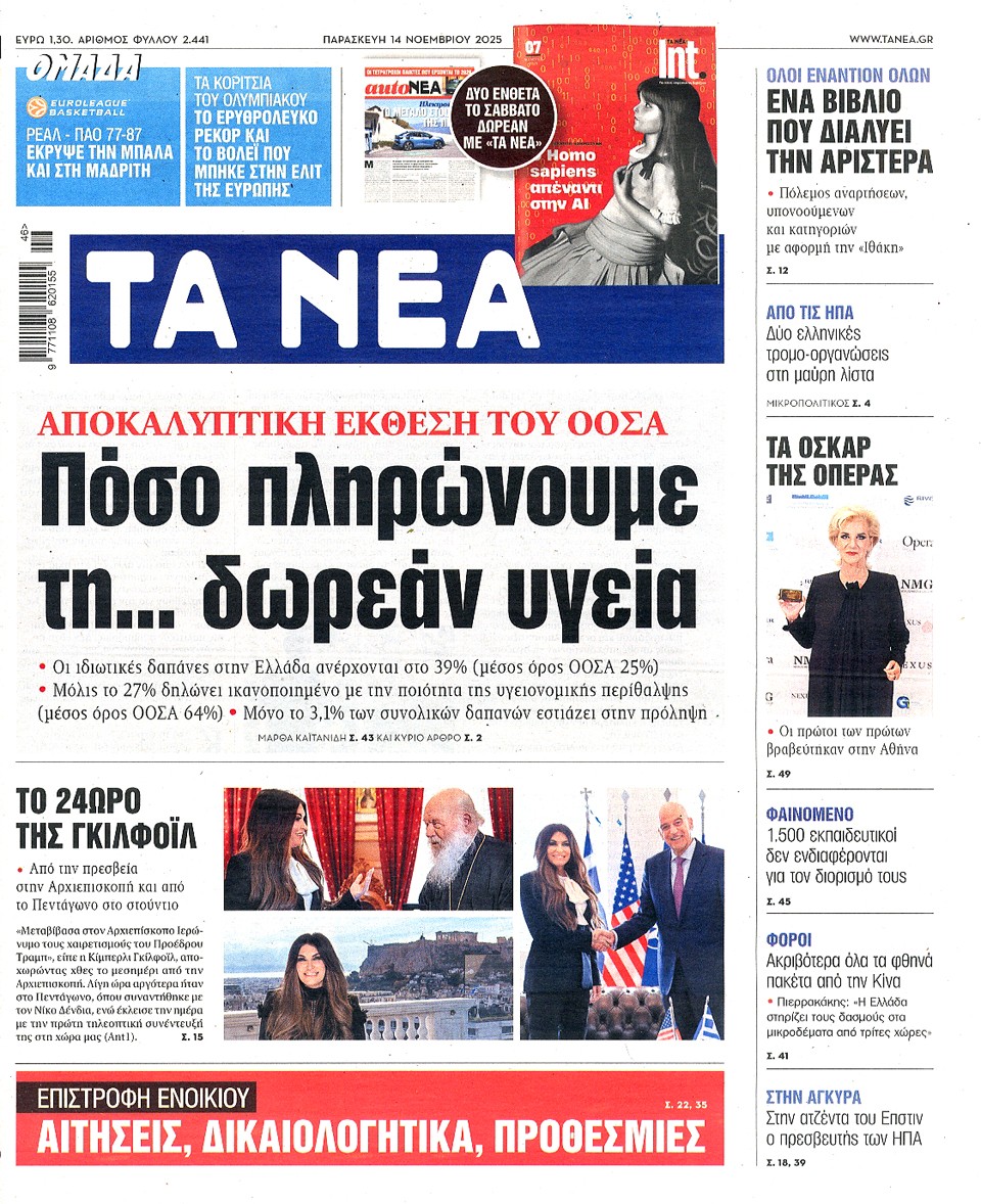 ΤΑ ΝΕΑ - 14 Νοεμβρίου 2025