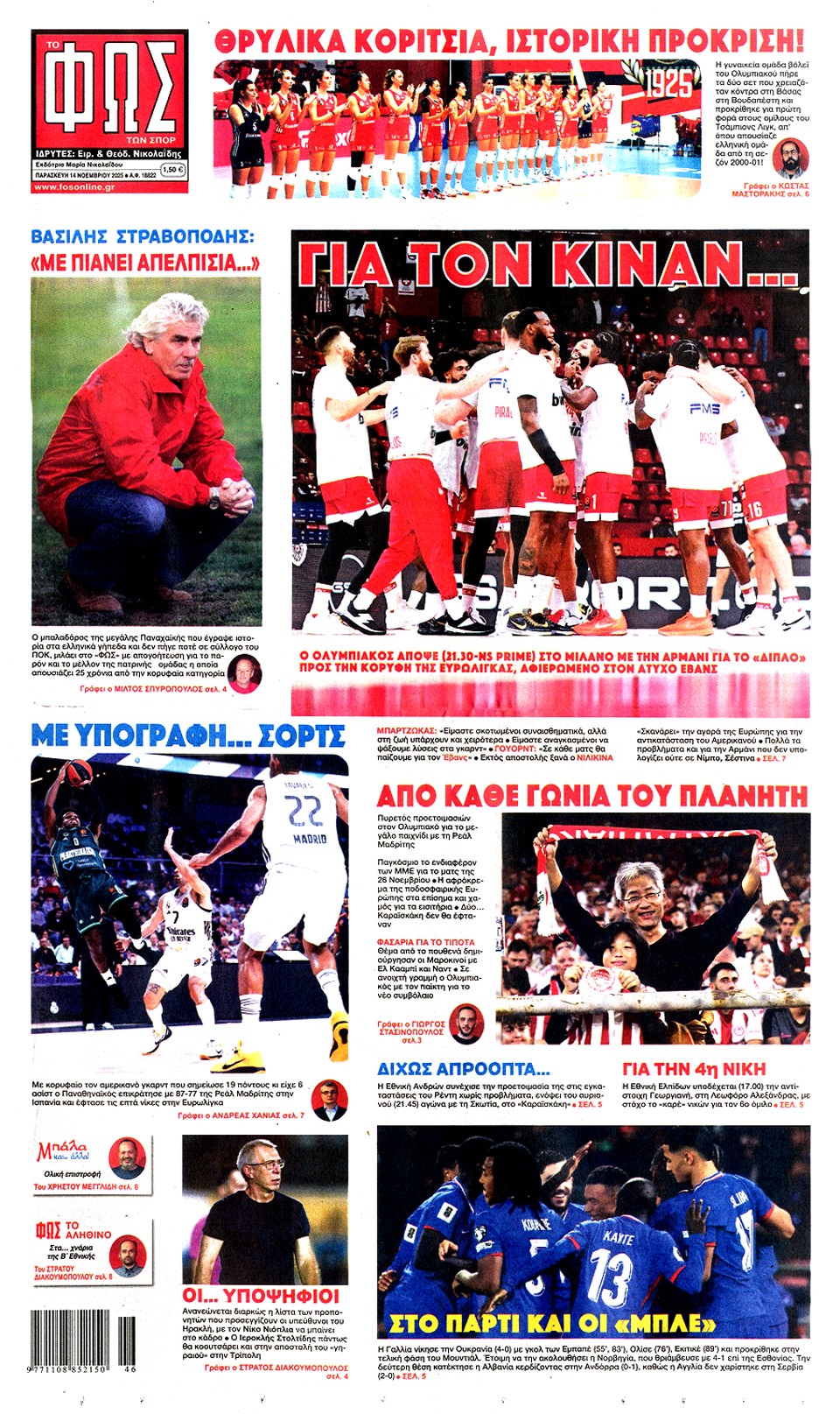 ΦΩΣ ΤΩΝ ΣΠΟΡ - 14 Νοεμβρίου 2025