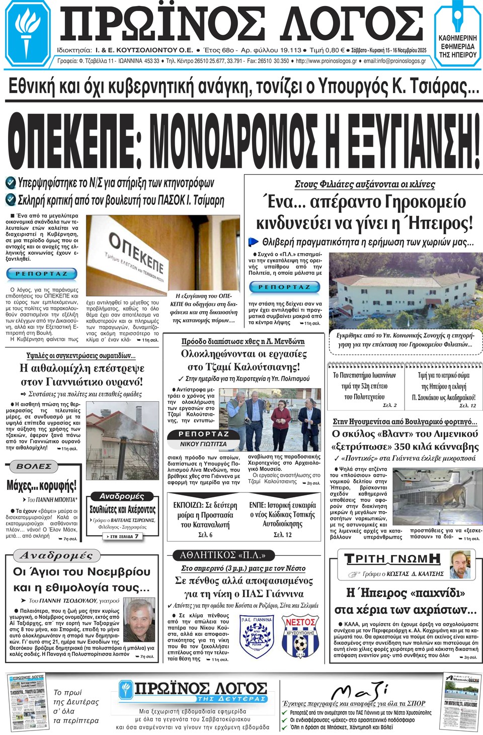 ΠΡΩΙΝΟΣ ΛΟΓΟΣ - 15 Νοεμβρίου 2025