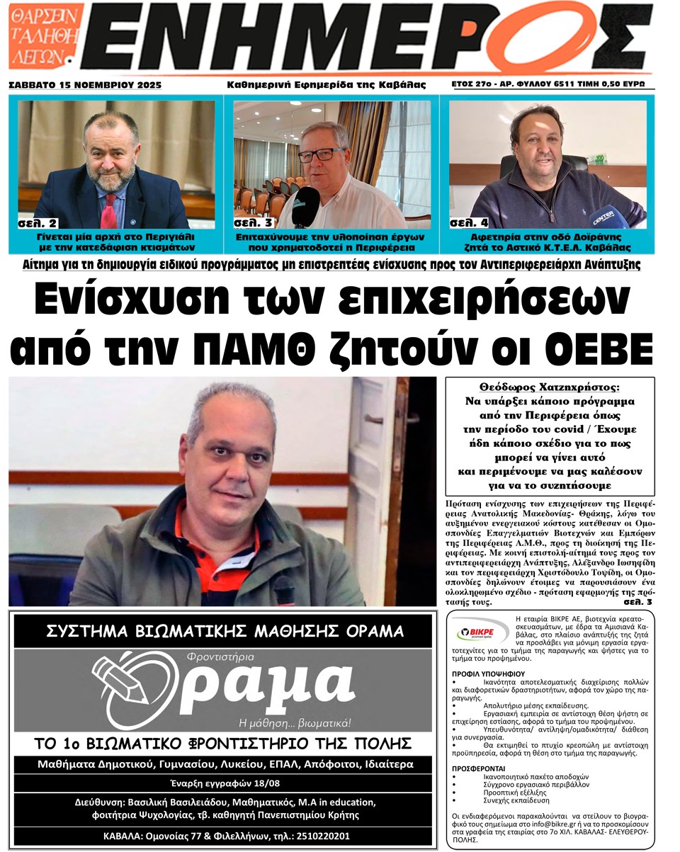 ΕΝΗΜΕΡΟΣ - 15 Νοεμβρίου 2025