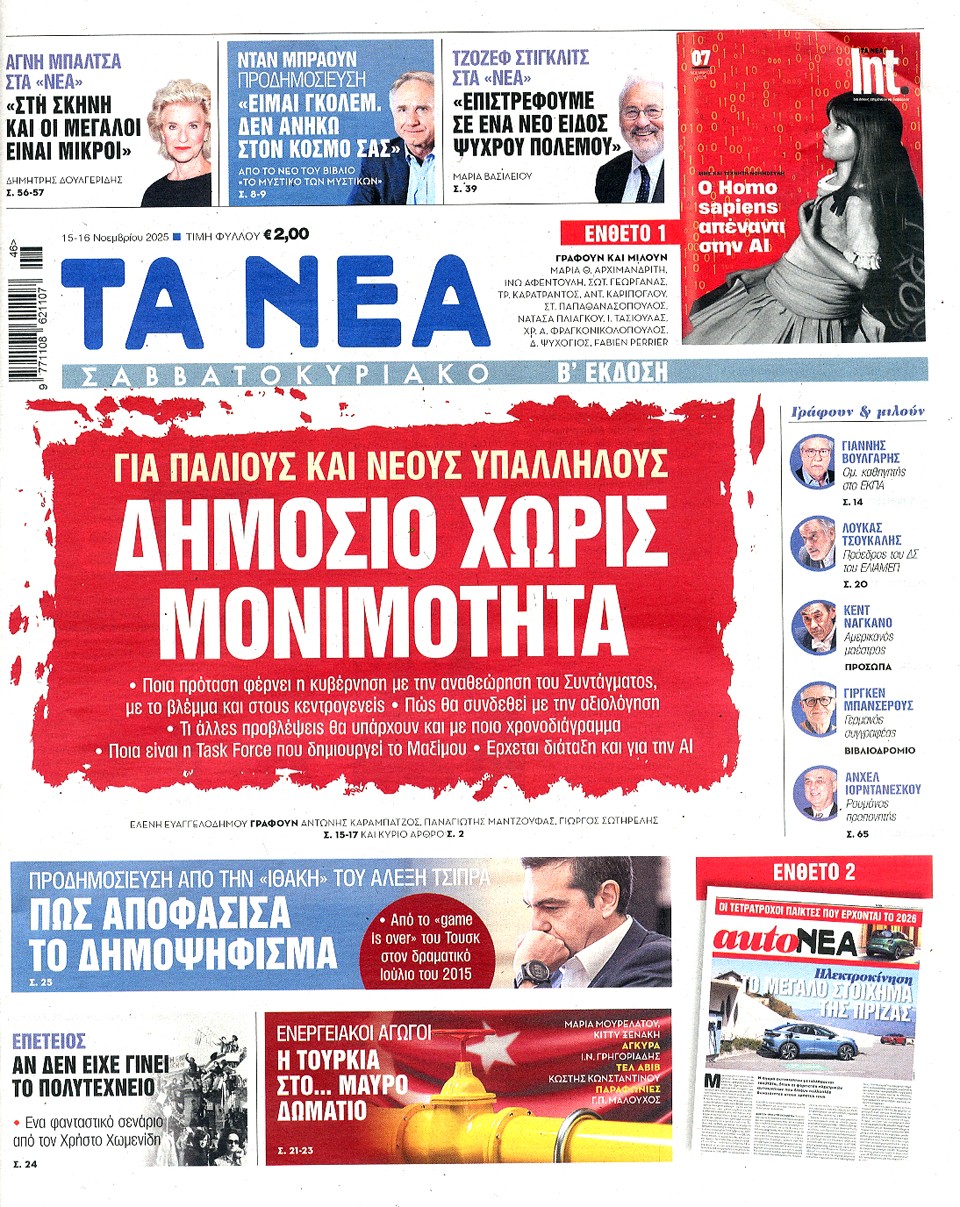 ΤΑ ΝΕΑ - 15 Νοεμβρίου 2025