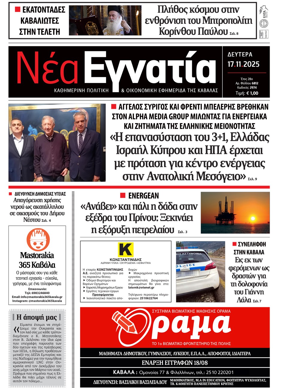 ΝΕΑ ΕΓΝΑΤΙΑ - 17 Νοεμβρίου 2025