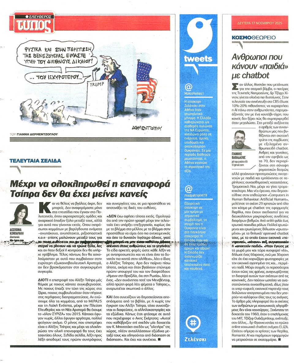 ΕΛΕΥΘΕΡΟΣ ΤΥΠΟΣ - 17 Νοεμβρίου 2025