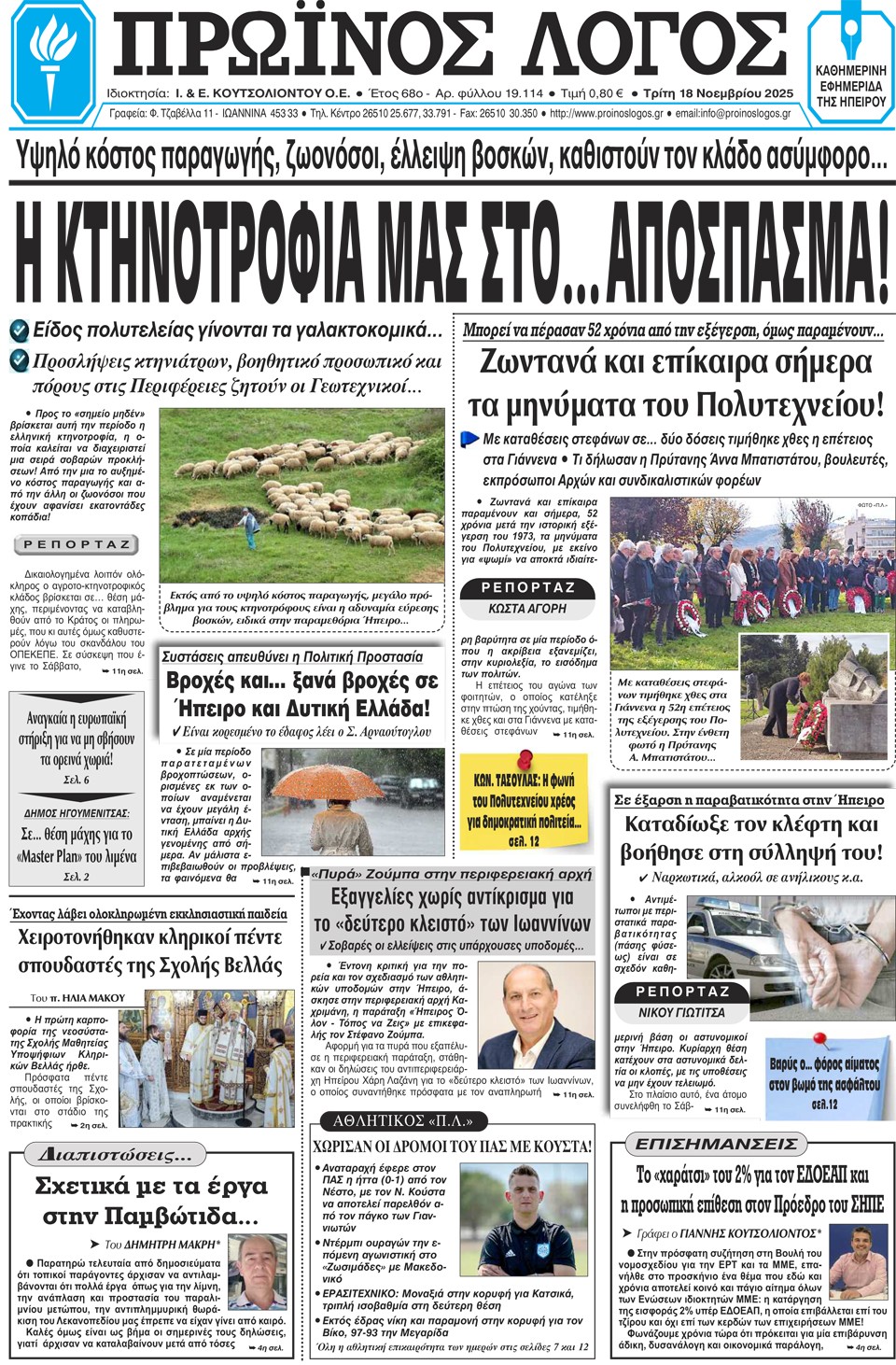 ΠΡΩΙΝΟΣ ΛΟΓΟΣ - 18 Νοεμβρίου 2025