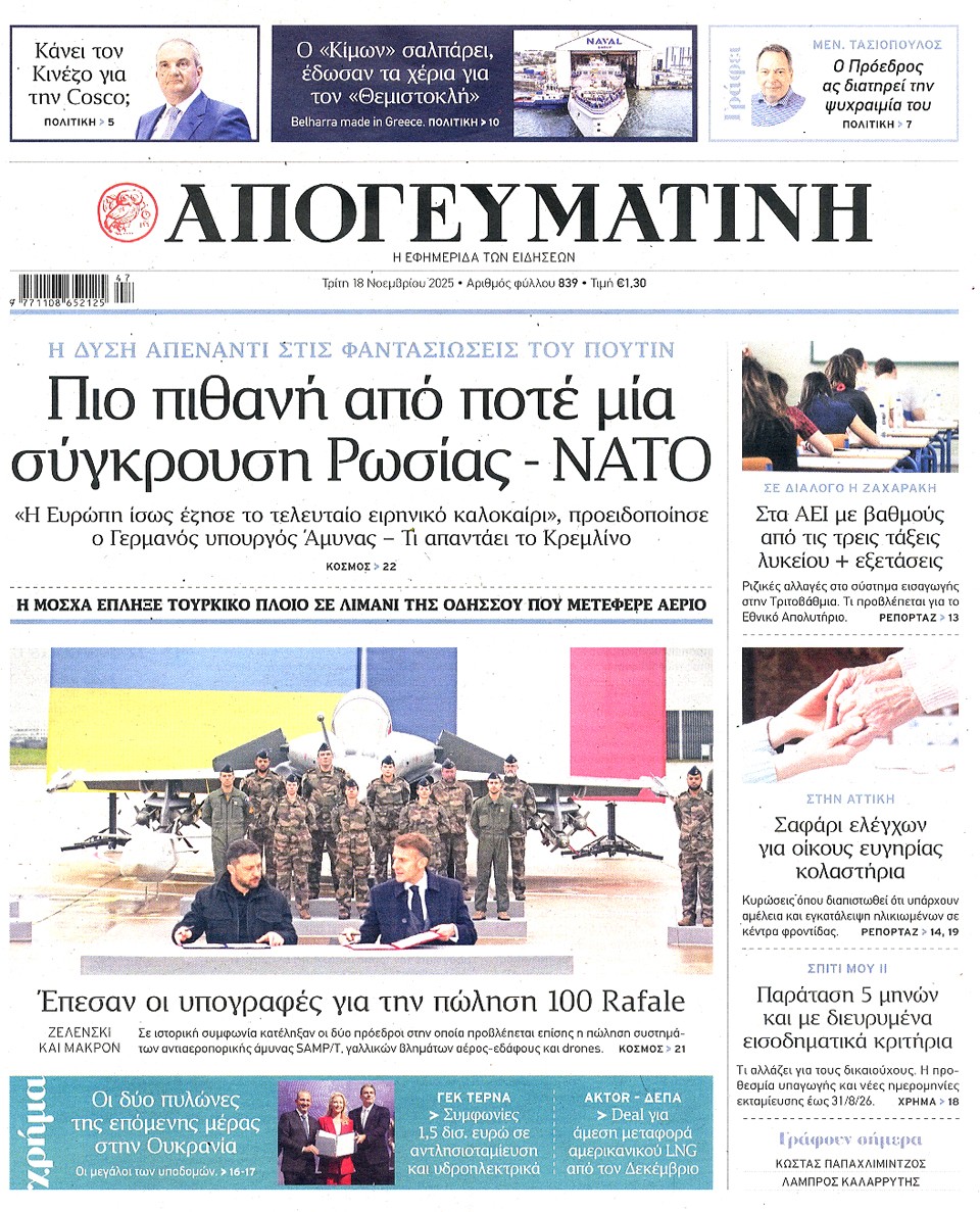 ΑΠΟΓΕΥΜΑΤΙΝΗ - 18 Νοεμβρίου 2025