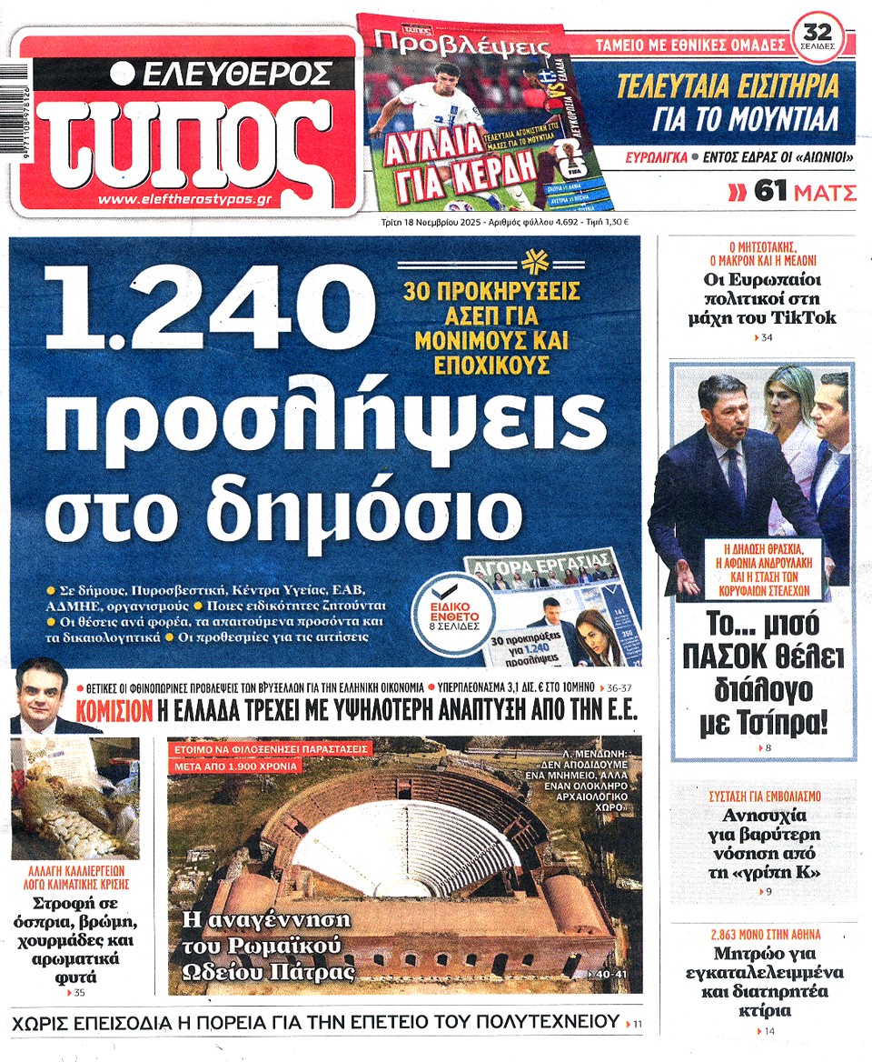 ΕΛΕΥΘΕΡΟΣ ΤΥΠΟΣ - 18 Νοεμβρίου 2025