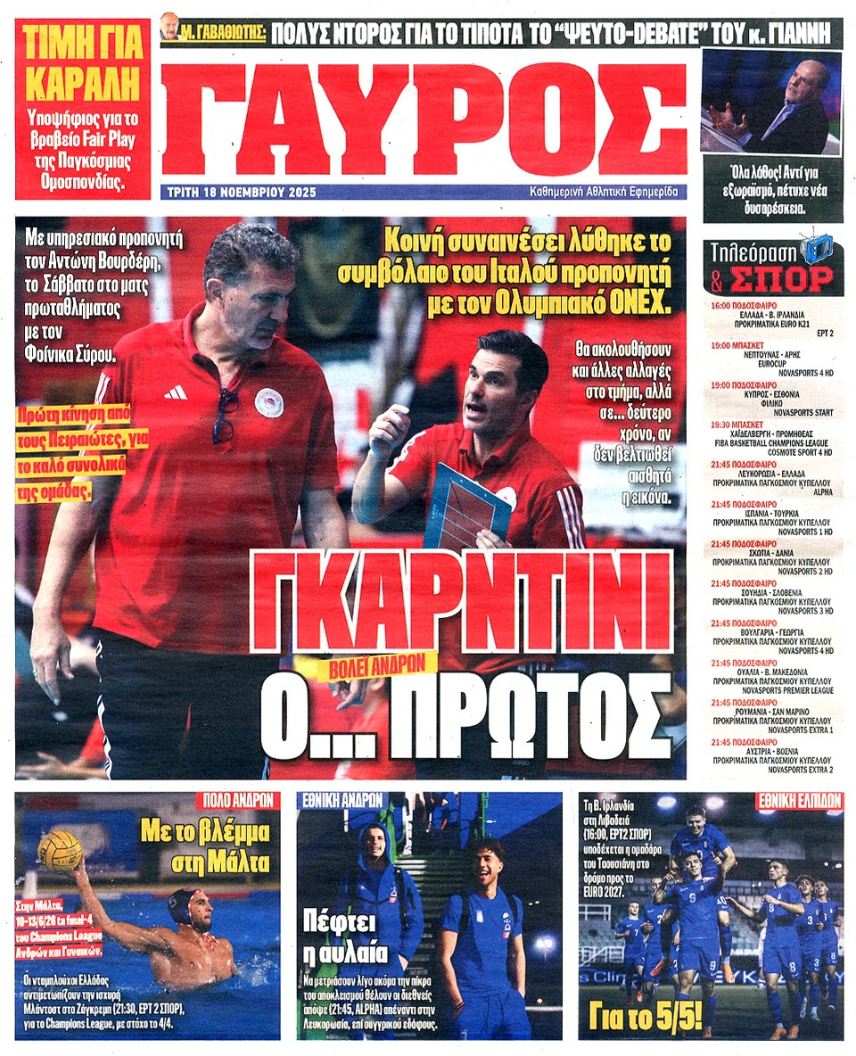 ΠΡΩΤΑΘΛΗΤΗΣ - 18 Νοεμβρίου 2025