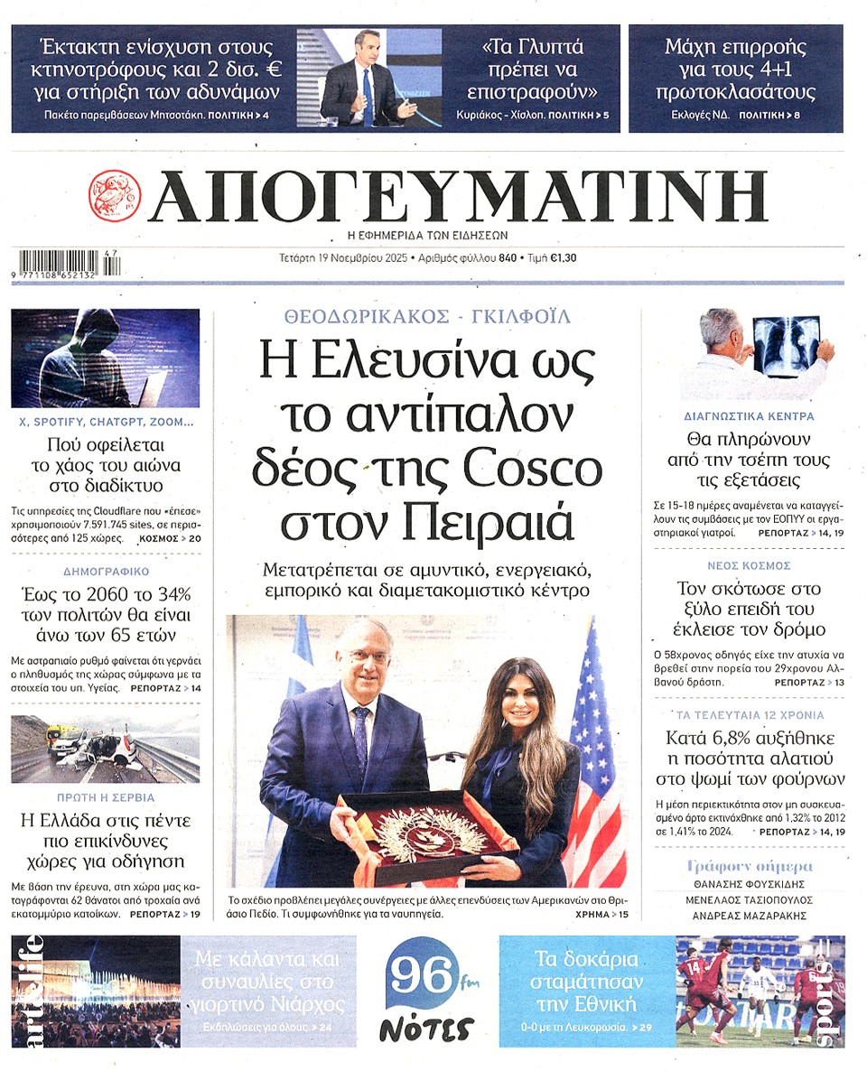 ΑΠΟΓΕΥΜΑΤΙΝΗ - 19 Νοεμβρίου 2025