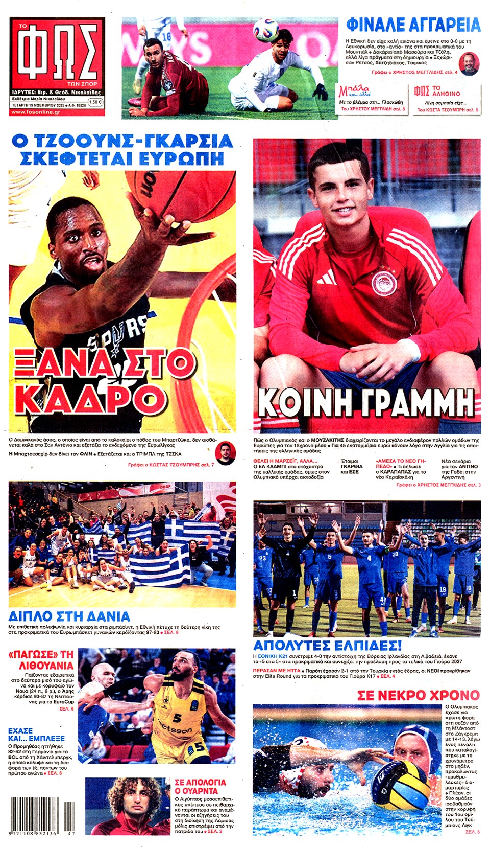 ΦΩΣ ΤΩΝ ΣΠΟΡ - 19 Νοεμβρίου 2025
