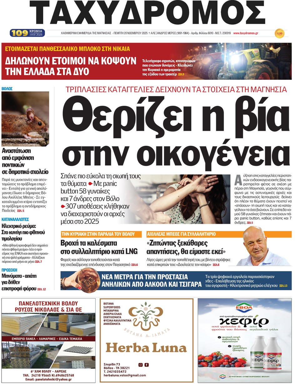 ΤΑΧΥΔΡΟΜΟΣ - 20 Νοεμβρίου 2025
