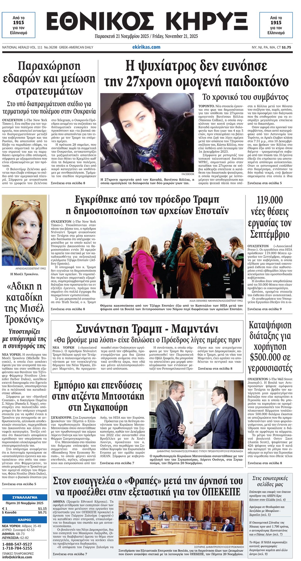 ΕΘΝΙΚΟΣ ΚΗΡΥΞ - 21 Νοεμβρίου 2025
