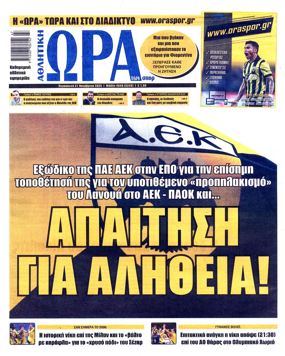 ΑΘΛΗΤΙΚΗ ΩΡΑ ΤΩΝ ΣΠΟΡ - 21 Νοεμβρίου 2025