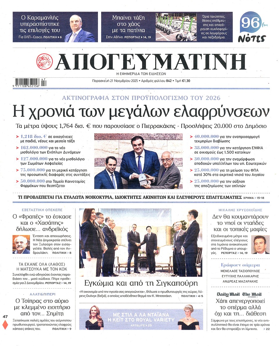 ΑΠΟΓΕΥΜΑΤΙΝΗ - 21 Νοεμβρίου 2025